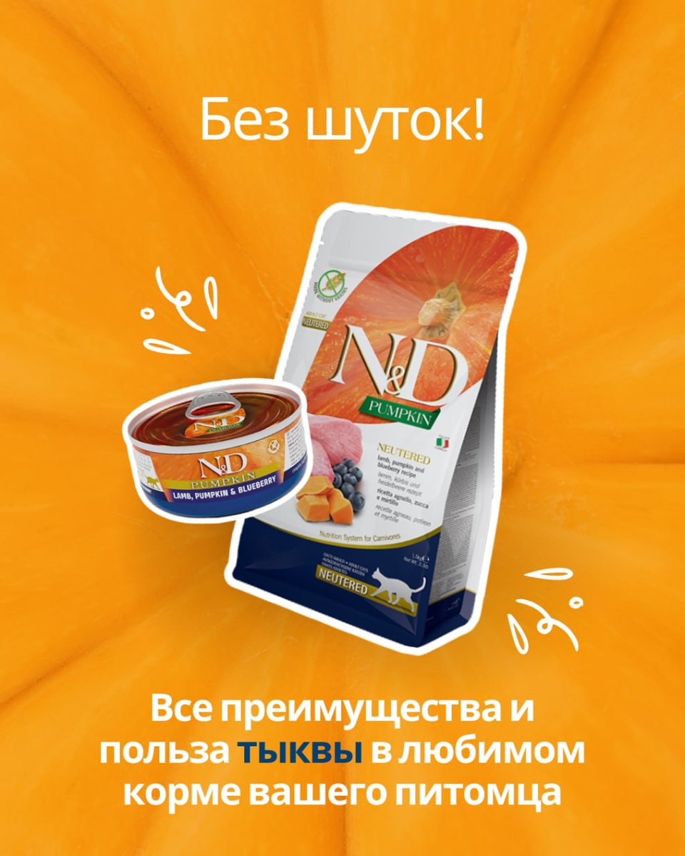 Корма N&D Pumpkin изготовлены из высококачественных ингредиентов, чтобы ваш питомец получал все необходимые питательные вещества из любимой еды! 🧡🎃 Не забудьте зарегистрировать своего питомца в программе Farmina.Забота о животных, чтобы получить бесплатный план питания 🧞