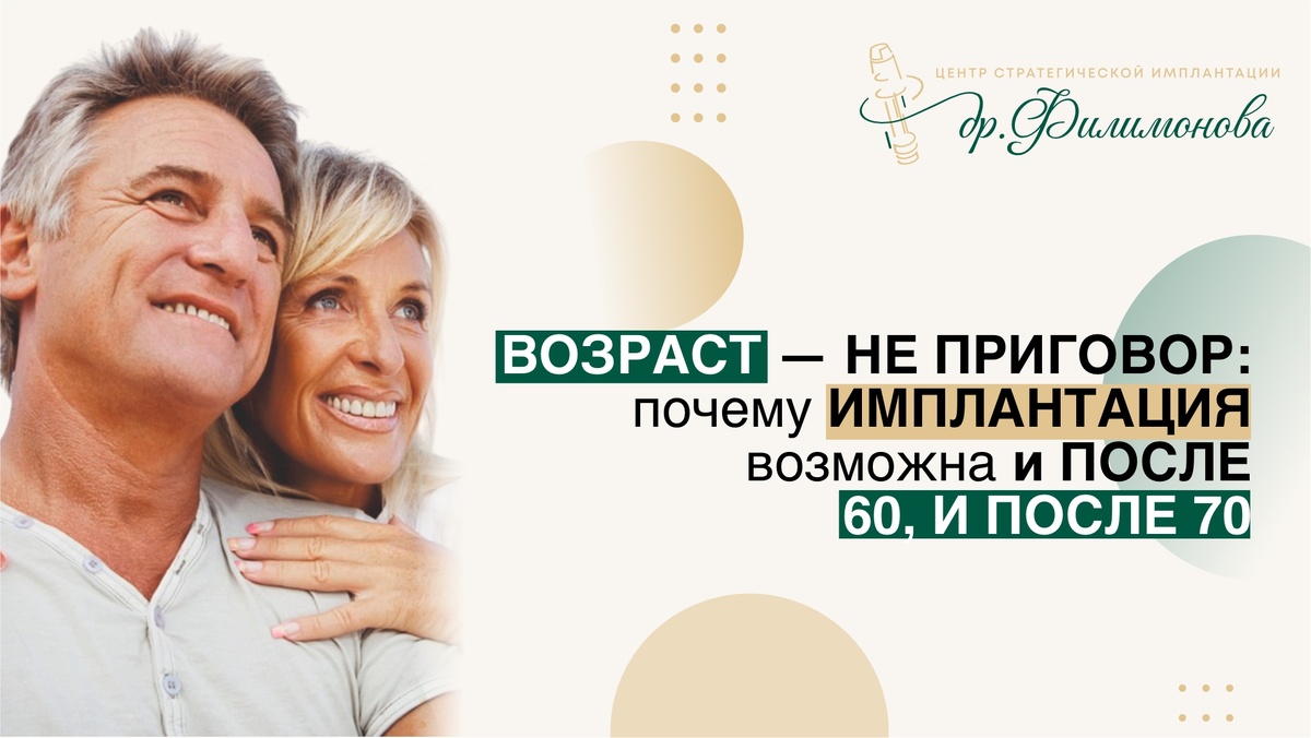 Один из самых частых вопросов, который я слышу: «Доктор, а мне уже поздно? Мне ведь уже за 60/70/80?». Отвечаю: нет, не поздно. Возраст — не противопоказание для имплантации. Более того, именно в зрелом возрасте импланты часто необходимы как никогда. С годами костная ткань убывает, и съемные протезы перестают держаться, вызывая дискомфорт и проблемы с питанием. Современные методы, такие как базальная имплантация или протоколы немедленной нагрузки, позволяют восстановить зубы даже при значительной атрофии кости, без долгого ожидания и мучительных процедур. Конечно, мы тщательно подходим к обследованию: учитываем общее состояние здоровья, возможные хронические заболевания. Но сегодняшняя анестезия и щадящие протоколы позволяют провести операцию комфортно и безопасно в любом возрасте. Не лишайте себя радости полноценной жизни из-за стереотипов. Ваши годы — это опыт и мудрость, а не препятствие для красивой улыбки. С уважением, Олег Филимонов.
