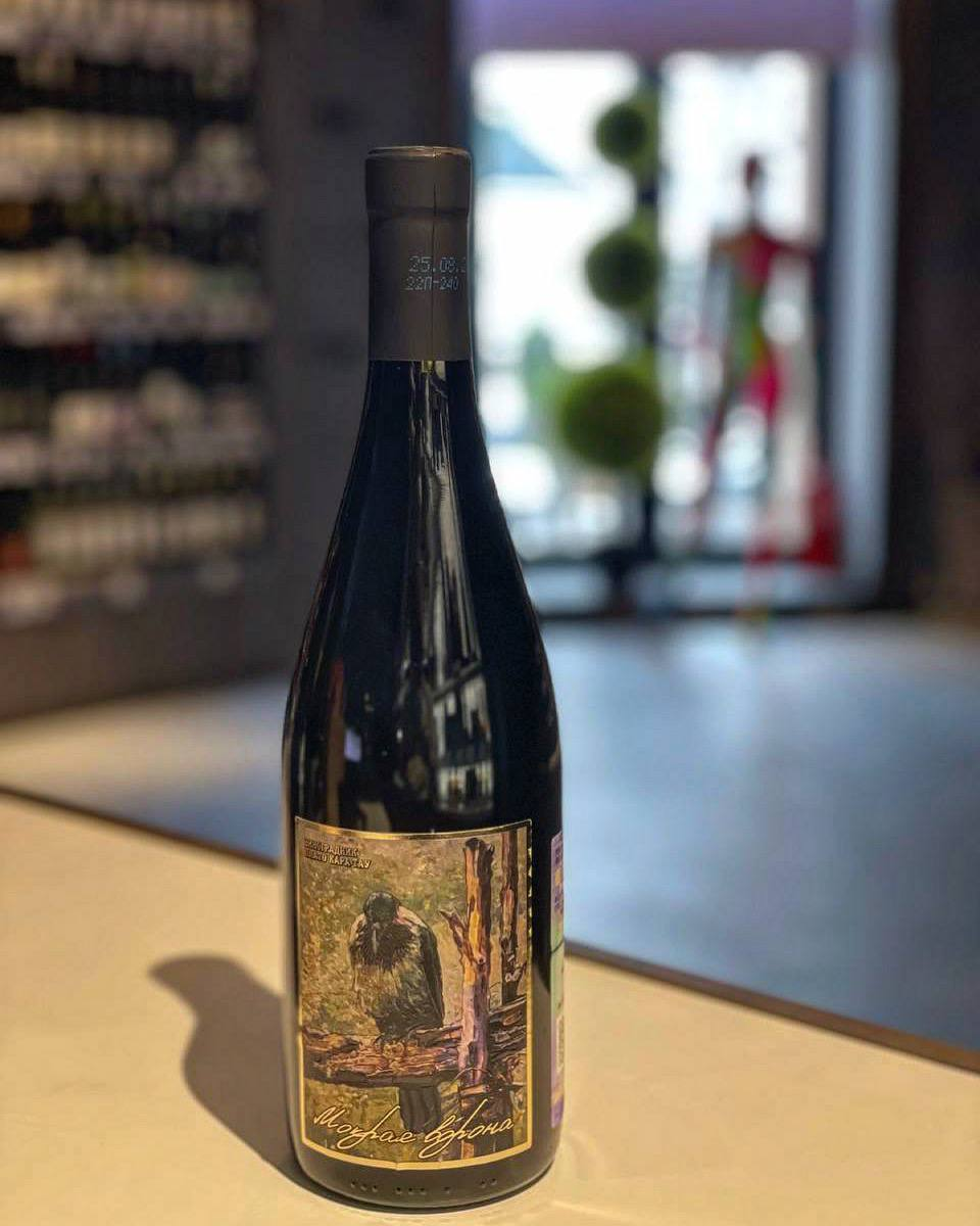 Крымское красное сухое вино Мокрая Ворона изготовлено из сортов винограда Аринарноа, Барбера, Мерло.