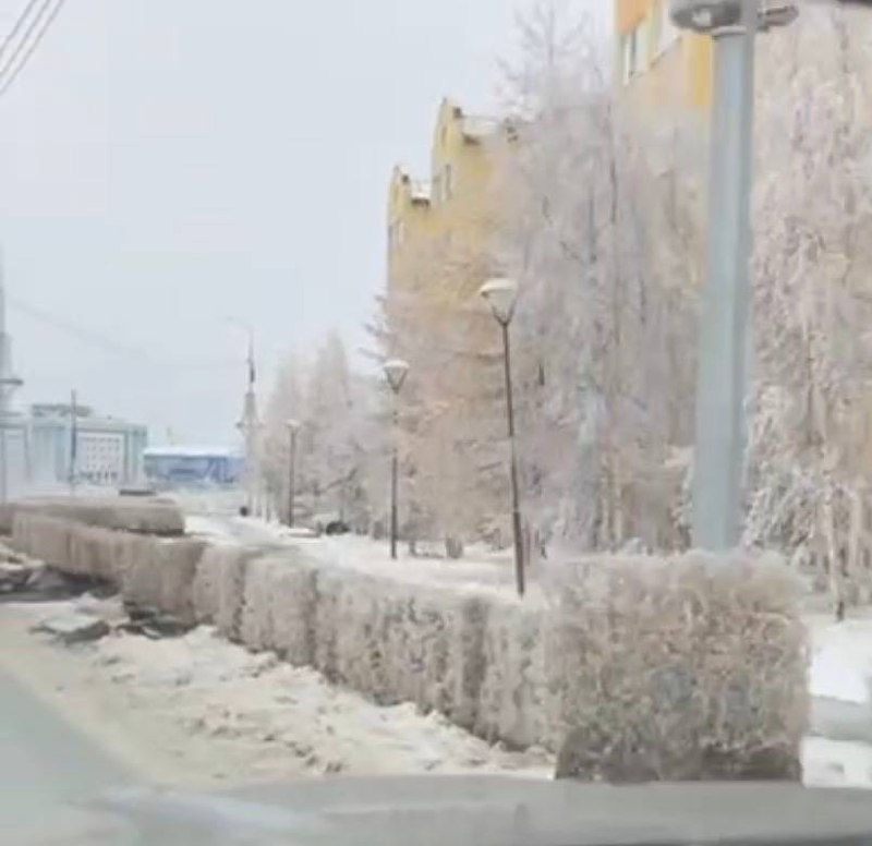 В Салехарде на улице сейчас -7, с утра было -14, на улице Арктической высаживают «живую изгородь» - тую