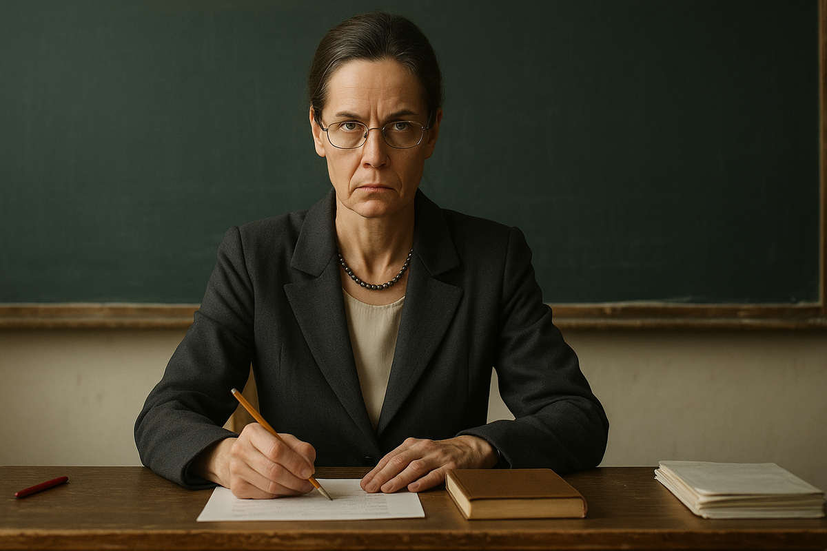 Она входила в класс за минуту до звонка — и сразу становилось тихо: разговоры утихали, и слышно было только шуршание страниц. Мария Ильинична была высокой, сухощавой женщиной с выразительными глазами, которые умели быть холодными, как январское утро. На шее у неё всегда висело тонкое ожерелье — будто чётки терпения.