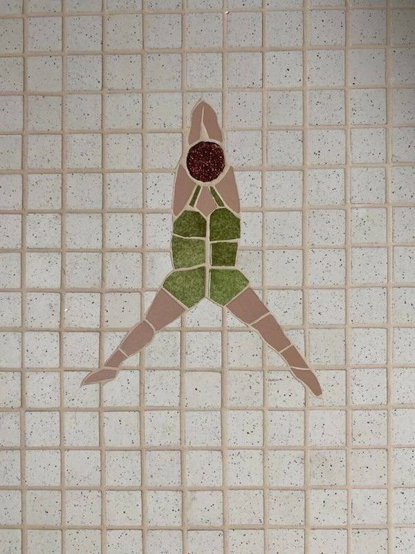 В ответ на пост Это, кстати, фрагмент работы французской художницы Mathilde Jonquière, её серии «Les Baigneuses» (Купальщицы): мозаика с миниатюрными фигурками пловчих, выполненная вручную из смальты и керамики. Эти работы часто встречаются в частных ванных комнатах, отелях и французских бутиках — они отсылают к эстетике бассейнов 1930-х годов и идее радости простых движений.