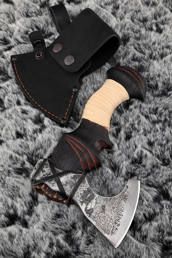 Топор Малыш-8 Клинок: сталь: углерод + ХВГ, высота: 150 мм, длина лезвия (режущей части): 90 мм, твердость (HRC): 57 Рукоять: кожа, ясень брашированный, длина: 230 мм Ножны: кожа. Цена топора: 14.330 рублей. Ссылка на топор 👈🏻 📲 Пишите для заказа: — Telegram: @Nazarklinokbot — WhatsApp/Viber: +79101343831 #ножи #ручнаяработа #охота #подарокмужчине #КузницаНазарова