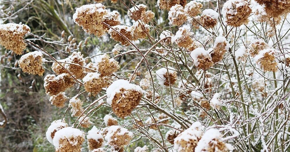 И гортензия зимует сама. Спокойно, без стресса, без выпревания и гниения.