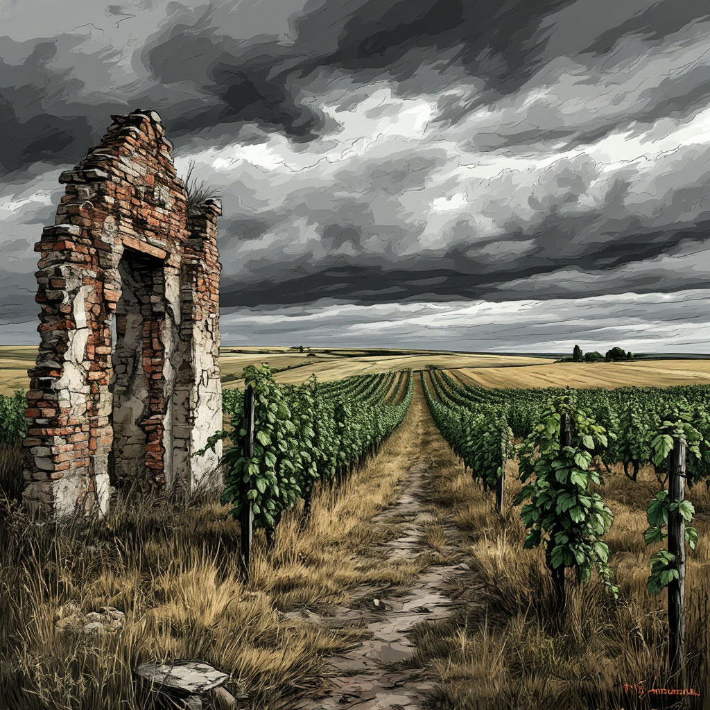 Ночью Синий метался по комнате, сдерживая стоны. Боль грызла его изнутри, с каждым днем становясь все невыносимее. На рассвете, чтобы не тревожить сон Коры, он ушел в лес — не столько за дровами, сколько за возможностью в одиночестве переждать приступ. Кора проснулась уже после восхода и сразу отправилась к реке. К удивлению, сегодня тело слушалось ее — тошнота отступила, в мышцах появилась привычная упругость. Пора было двигаться дальше: небесные знамения не сулили ничего хорошего. Решили идти на юг, подальше от надвигающихся зимних ветров. По дороге снова попадались руины — безмолвные свидетельства чьих-то давних войн. И среди этого запустения — неожиданный подарок судьбы: целое поле хмеля, тяжелые шишки которого так и манили остановиться. — Мы могли бы задержаться на день, — тихо сказал Синий, и в его взгляде было что-то новое, незнакомое. Кора кивнула, еще не понимая, что стоит за этой просьбой. И тогда он внезапно прижал ее к стене, его руки стянули пончо, а губы обожгли ее впервы