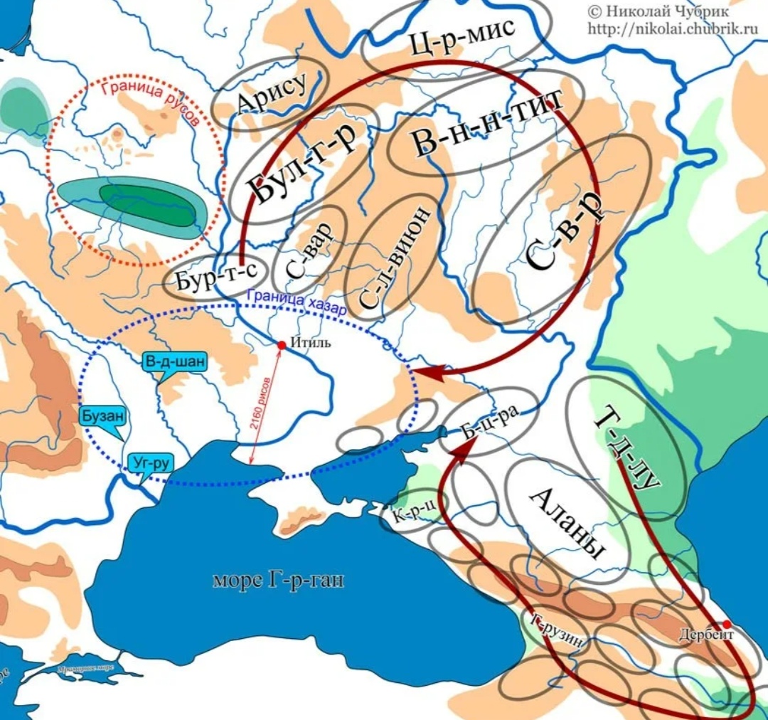 Туран и Россия, часть 2. **Часть 2** Также Н. Чубрик убедительно доказал, что до X века Гнездовское городище носило название первого города Болгар, принадлежавшего Волжским Булгарам. В XI веке его захватили и заселили русо-варяги, а затем оно было разрушено. Возможно, это сделали сами Волжские Булгары, когда отбирали город у русо-норманнов, которые к тому времени приняли ислам. В 16 в. Никоновская реформа вела борьбу с этой религиозно-культурной традицией: Христиано - мусульманской, которая оставила свой след в русской культуре и в истории, как очищение Христианство от старой веры: Христианства и мусульманства. Город Смоленск до X века был известен как Сувар, а в XI веке стал городом русо-варягов. Исторические источники подтверждают, что до X века Нижний Новгород носил имя города Брахимов, а рядом с Золотореским городищем располагался второй город Болгар, также принадлежавший Волжским Булгарам. Однако были и другие города с таким же названием: на нижней Волге, потомки которых стали изв