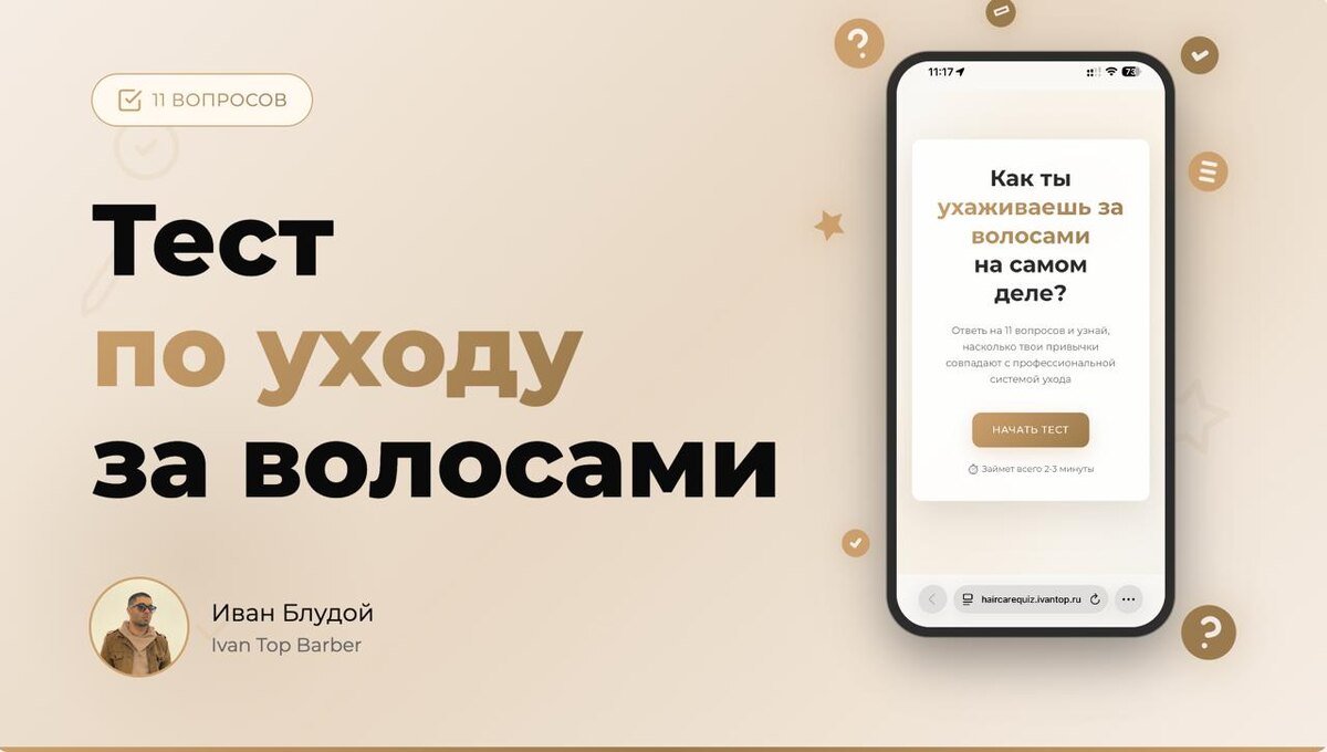 ! Давайте немного развлечёмся и проверим, кто из нас ухаживает за волосами правильно, а кто просто надеется на чудо;) Я собрал 11 простых вопросов, которые покажут, насколько вы дружите со своими волосами. Тест занимает 2 минуты, а результат может удивить. Пройти тест: https://haircarequiz.figma.site/ Делитесь результатами в комментариях.