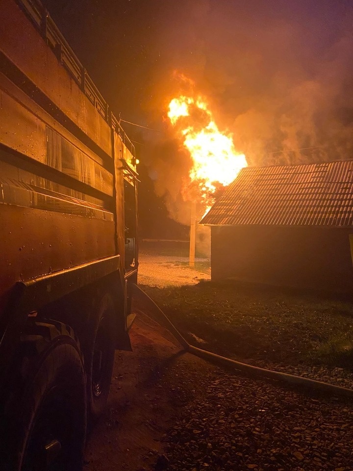 Ранним утром в частном домовладении на улице Тенистой вспыхнул пожар. Прибывшие бойцы пожарно-спасательной части более двух часов работали на ликвидации огня. Предварительно установлено, что пожар возник вследствие аварийного токового явления в электрической сети, пояснили в Госпожнадзоре. Огонь повредил шлакоблочную баню площадью 30 кв. метров и шлакоблочный гараж площадью 30 кв. метров под общей двускатной металлической кровлей. В гараже сгорела «Лада Гранта». При тушении пожара выявлены нарушения требований пожарной безопасности. Фото предоставлено Павлом Михайловым