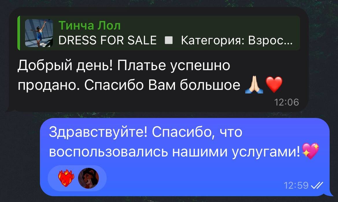 Спасибо, что доверяете нам продажу своих танцевальных сокровищ! Нам очень приятно получать от вас сообщения с благодарностью
