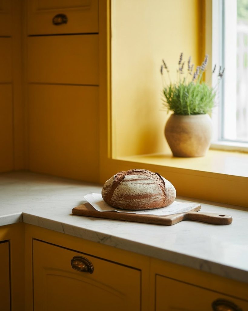Жёлтые оконные рамы — это способ впустить солнце, и вся кухня засияет вместе с ним. Они отлично сочетаются с зелёными и растительными мотивами или пастельными оттенками, создавая нежную атмосферу загородного дома. В небольшой квартире, которую я случайно нашла, жёлтые рамы превратили обычное окно в эффектный акцент.