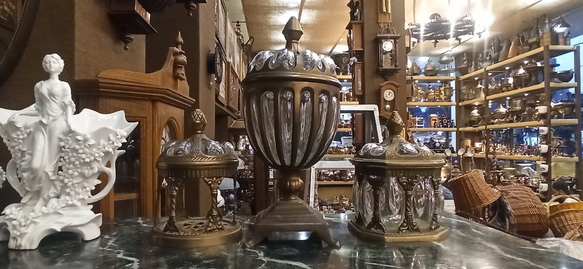 У меня уже были посты с фотографиями всяких прекрасных вещей из сравнительно недавнего прошлого, которые продавались в одном дивном антикварном магазине в Бейруте. Товары там никогда не залеживаются. Условно говоря, если заходишь раз в месяц, то постоянно всё товары другие. Потому что хозяин раз в неделю проводит аукционы и народ разбирает недавно привезенное в магазин. Магазин довольно большой, можно купить как что-то мелкое, так и, к примеру, мебель. Тумбы, буфеты, столы, шкафы. Бывают люстры и светильники. Состояние отличное. Видно, что в домах висело и за ними ухаживали. Я б такое не продавала. Вот, вы ни за что не догадаетесь, что это такое. Правда? А это такие стулья. Да, на них сидят. Как же я всякие витринки старые и буфеты люблю, кто б знал! Сверху вырезанный из дерева же орел. Много всяких предметов бытовых красивых. Чайники стоят с чайниками. Это блюдо с крышкой. Красивая работа по металлу. Мальницы для кофе и специй, тоже все рядом, можно сравнить и выбрать. Утюги. У меня