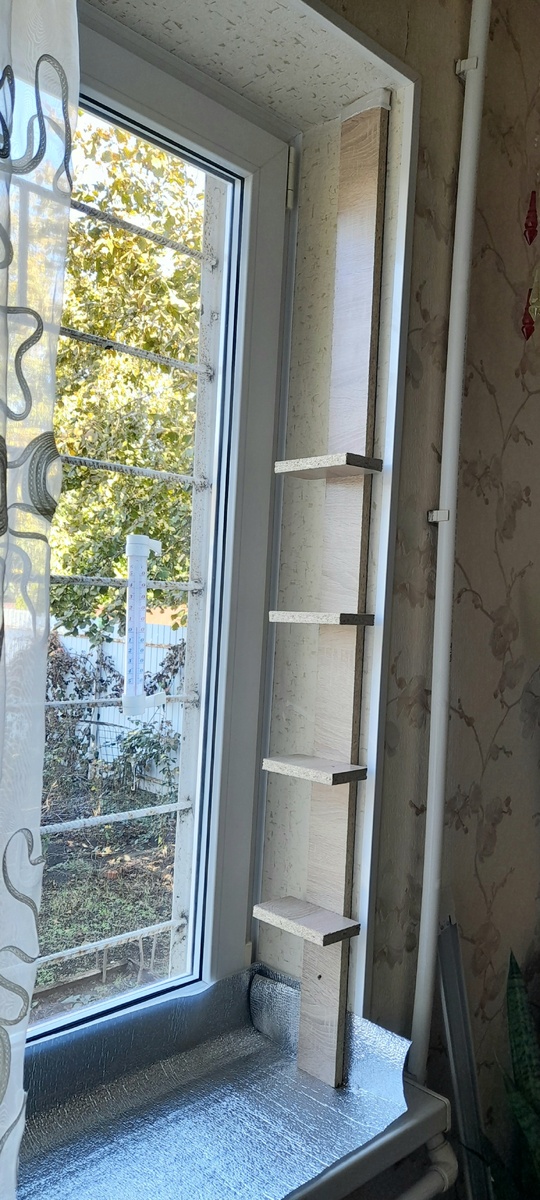 Здравствуйте, мои читатели!❤️ Сегодня расскажу вам о новом слове в цветоводческом полкостроении. Во всяком случае, я такого принципа нигде не встречала, поэтому буду считать его своим изобретением. Что характерно - не собиралась больше ничего мастерить, и вот опять🤦♀️ Началось всё с того, что поехали мы с мужем в магазин. А рядом с тем магазином, наверное, имеется какой-то мебельный цех, потому что лежала там целая куча разных деревянных отходов, обрезков ДСП, фанеры и т.п. Конечно, мимо такого Клондайка никак нельзя было пройти. Больше всего мне там понравились длинные узкие полосы ДСП, ровные, одинаковые по размеру, да ещё и ламинированные. Я даже представления не имела, зачем они мне, но запас, как говорится, карман не трёт, и эти полосы в количестве 5 штук поехали с нами домой, где были сложены в ожидании того времени, когда могли бы зачем-нибудь пригодиться. И это время пришло гораздо быстрее, чем я думала. Лежу давеча в задумчивости и размышляю о том, что скоро все цветы на