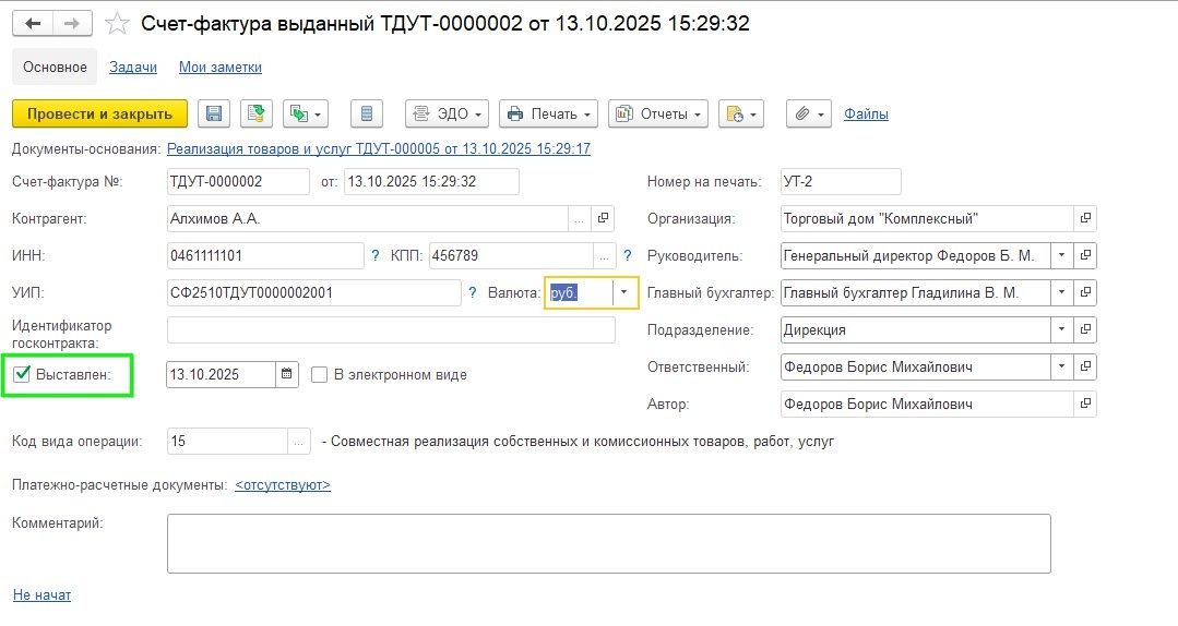 ✏️ Редактирование счет-фактуры в Управлении торговлей 11.5