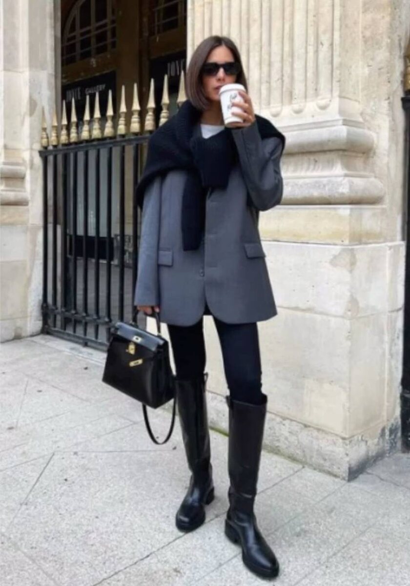 Очень круто комбинация скинни (или слим фит) смотрятся с объемным верхом, лучше чуть удлиненным. ✅Что это может быть: 👉Пиджак или пальто пиджак 👉Объемный джемпер, можно с первым слоем 👉Кардиган удлиненный