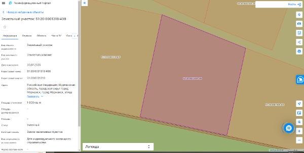 Название: Земельный участок с кадастровым номером 51:20:0001318:408 площадь 1000 по адресу Российская Федерация, Мурманская область