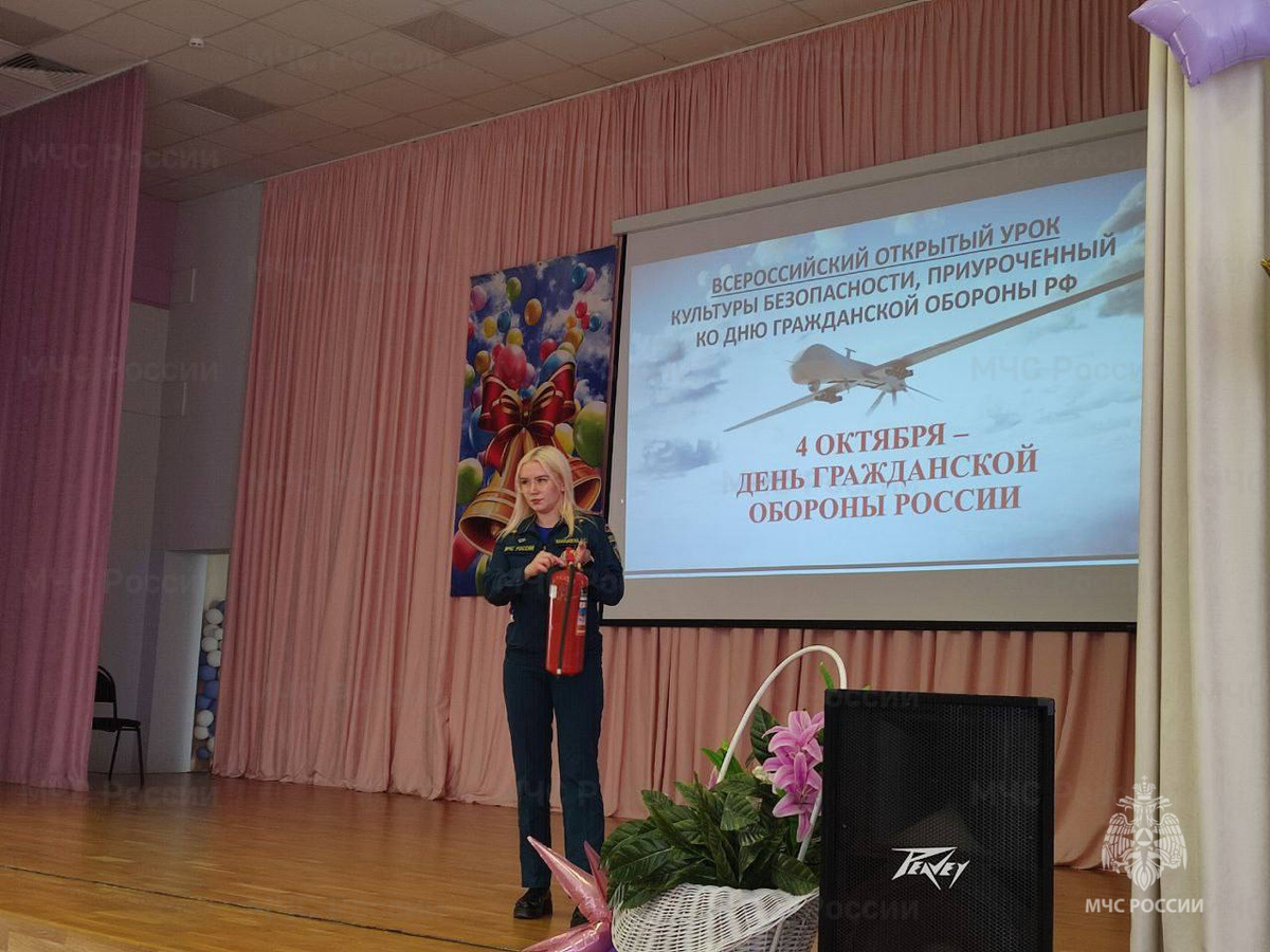 В рамках мероприятий, приуроченных к 35-летию МЧС России, сотрудники Главного управления МЧС России по Белгородской области продолжают проводить обучающие уроки для школьников, на которых рассказывают о пожарной безопасности, истории министерства, основах гражданской обороны нашей страны. Так, в гимназии № 3 и в средней общеобразовательной школе № 24 областного центра старший дознаватель отдела надзорной деятельности и профилактической работы города Белгорода Олеся Вандышева рассказала ученикам, как создавалось и развивалось чрезвычайное ведомство, кто стоял у истоков становления, как изменилась пожарная техника. Познакомила ребят с основными задачами гражданской обороны и её ключевой ролью в обеспечении безопасности нашей страны. Для наглядности и лучшего усвоения материала она продемонстрировала школьникам тематические видеоролики. Занятие сопровождалось показом средств индивидуальной защиты: противогазов, респираторов и костюма Л-1, которые предназначены для защиты кожных покровов ч