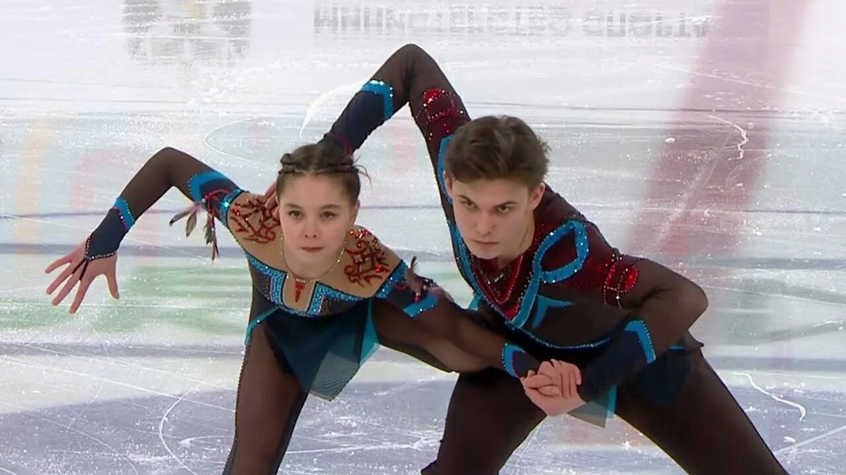 Первый Гран при России среди юниоров. Пары. Зоя Ковязина и Артемий Мохов - лидеры. Ольга Сабада и Павел Астахов на третьем месте.