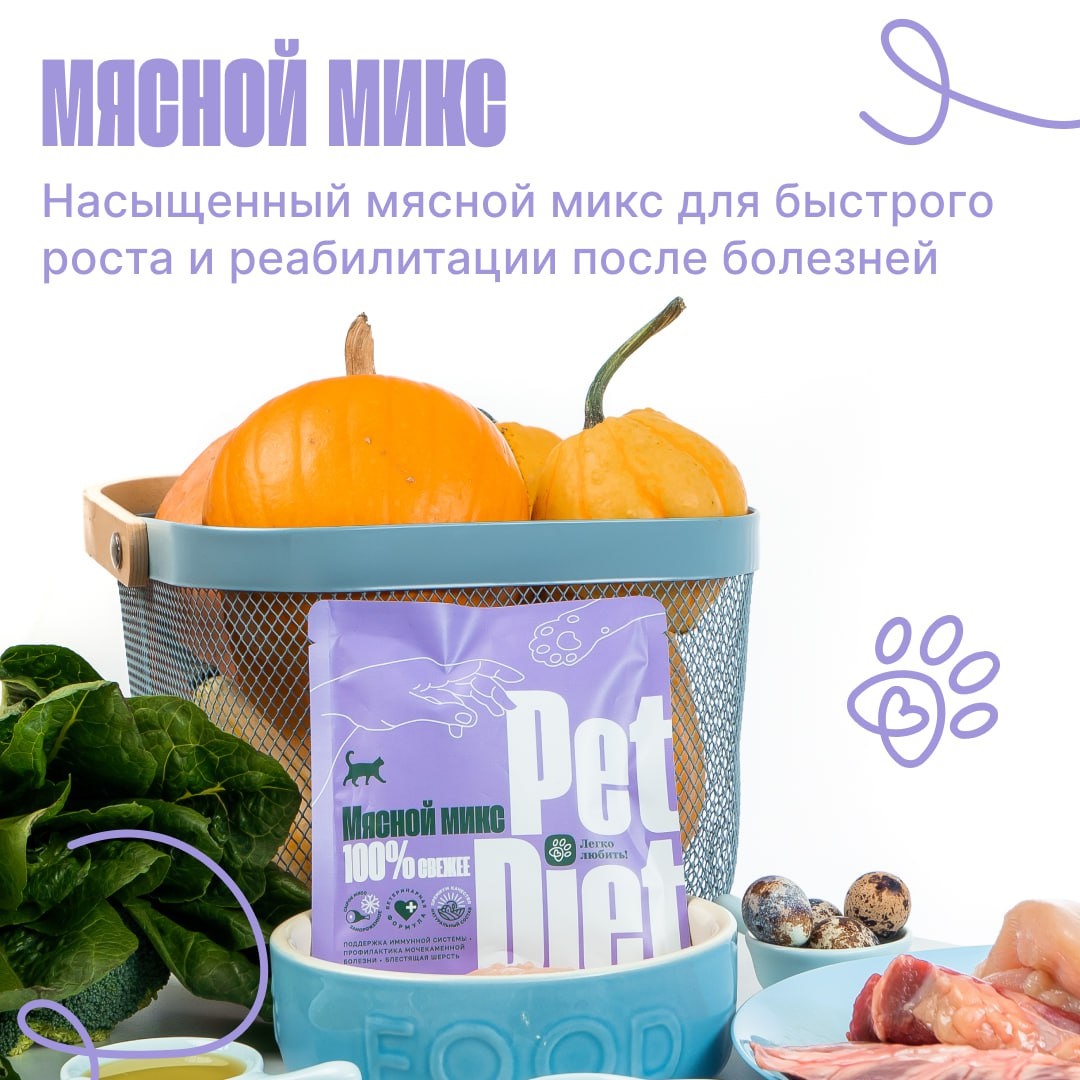 Мясной микс для кошек - это натуральный замороженный рацион, специально разработанный для котят, взрослых и кастрированных или