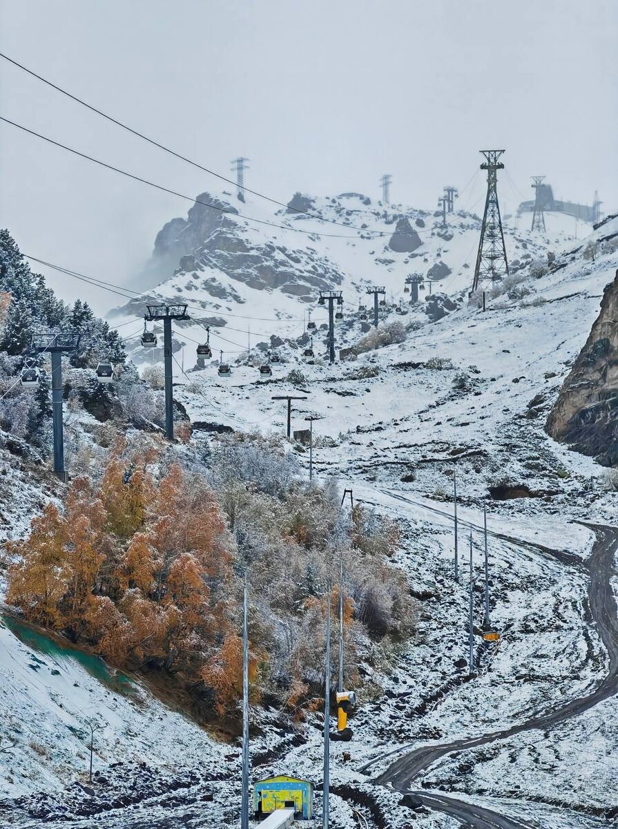Первый снег выпал на Поляне Азау на Эльбрусе. Зима близко ❄️