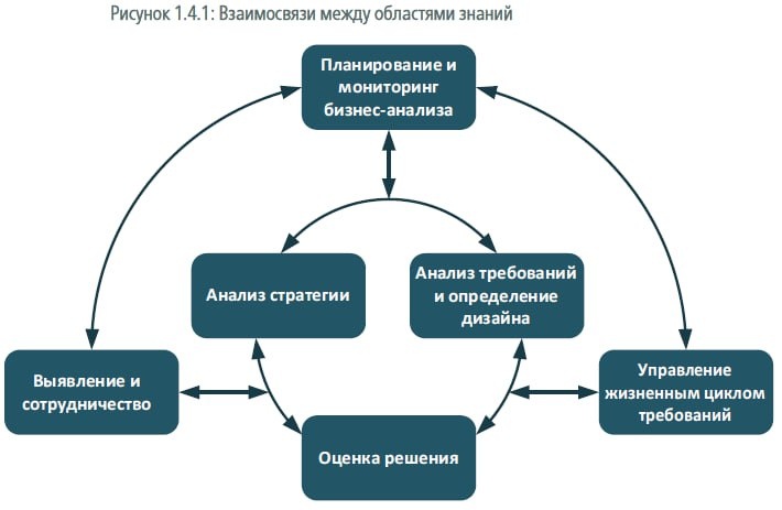 Дальше мы видим попытку связать все эти Шесть областей знаний Руководства BABOK между собой