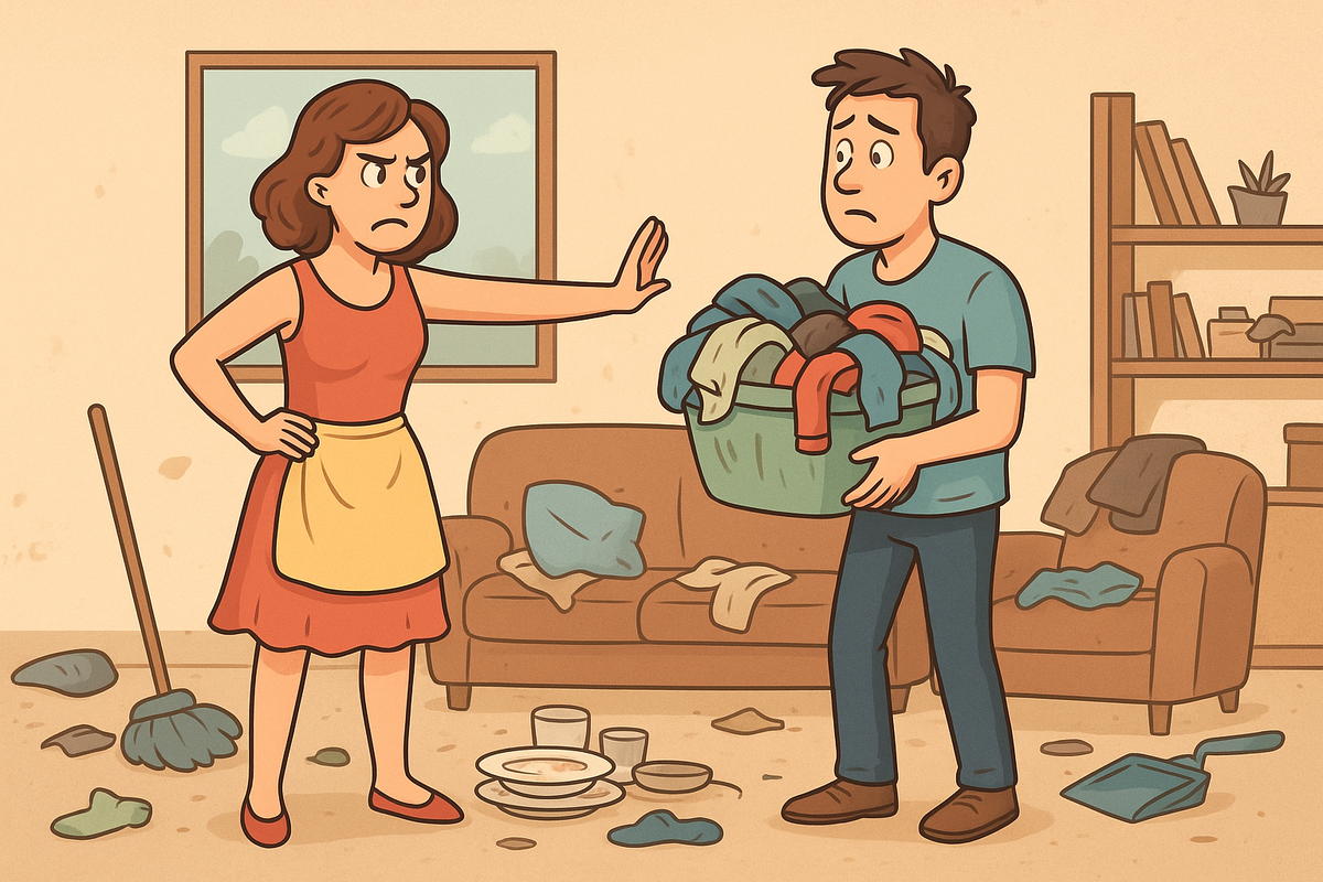 Ровно месяц назад я объявила мужу, что объявляю бессрочный отпуск от роли уборщицы, повара и прачки. Не из лени. Из отчаяния. Я сказала: «Я не твоя мама, не твоя горничная и не невидимка. Я твой партнер. Если ты этого не видишь, давай посмотрим, во что превратится наша жизнь, когда я перестану делать свою «невидимую» работу.