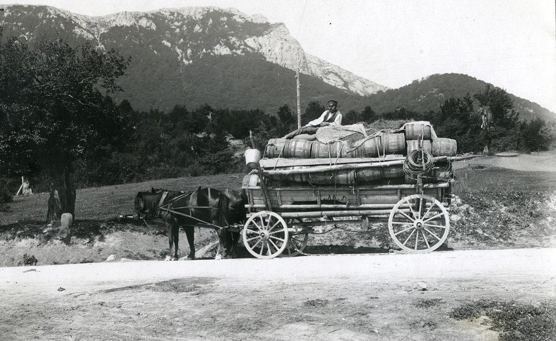 Перевозка бочек для вина. Татары крымские. Татары крымские. Окрестности Чатырдага?. 1907 год Автор фото: Дубровский М.И. Желатиновая бумага с проявлением (DOP) Из фондов: Российский Этнографический музей, Санкт-Петербург. Инвентарный номер: РЭМ 1315-27 В описании на сайте музея, указано, что фотография сделана в Симферополе. Но это явно не так. Может быть, кто то сможет идентифицировать место съемки? На мой взгляд - дорога из Алушты в Симферополь, где-то в районе нынешнего Ангарского перевала. #этнография #крымскиетатары #Дубровский #вино
