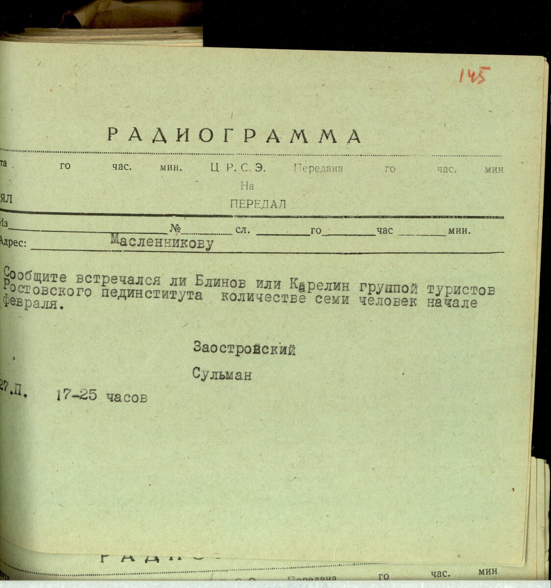 Одним из непонятных моментов в деле о гибели группы Дятлова является загадочная ростовская группа. Про эту группу мы можем узнать из радиограммы. При этом был вопрос не встречали ли ростовчан туристы из групп Блинов и Карелина. Напомню, что группы Блинова и Карелина проходили маршрутами близкими к маршруту группы Дятлова. Ростовские туристы вроде как должны были уже появиться из похода, потому что вышли на маршрут почти сразу за группой Дятлова. Но видимо известий о них не было. По крайней мере радиограмма датированы 27 февраля и получается, что к этому моменту ничего не было известно об успешном окончании похода группы Фоменко из Ростовского пединститута. Что несколько удивляет. Видимо это свидетельствует о бардаке с отчетностью по походам того времени. Потому что, к сожалению, нет отчета этого похода. Нет никаких записей. Осталось только интервью от руководителя группы Фоменко которого уже нет в живых. Интервью очень путанное. Вроде бы их было семь человек, и они пошли в поход практи