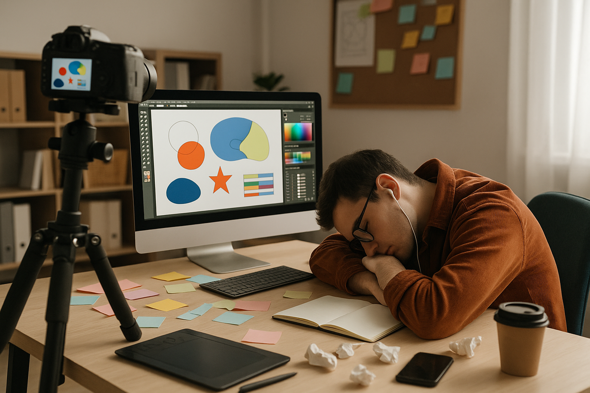 Иногда кажется, что дизайнеры на фрилансе — это просто люди, которые «не такие как все» и «не хочу работать на дядю», но если копнуть глубже, окажется, что многие из них на самом деле не мечтали о фрилансе, а ушли туда вынужденно (я тоже) В офисе дизайнер тратит время не только на макеты, идеи, цветовые схемы, но и часы (без преувеличений) на согласования, письма в три страницы и совещания И это не шутка: по данным Microsoft, сотрудник креативной профессии тратит до 58 % рабочего времени на коммуникации и координацию, а не на саму работу. Каждый день похож на «день сурка»: созвон, встреча, фидбек, правки, новый фидбек. Мозг, который должен искать метафоры и формы, начинает работать как сервер по обработке входящих Креативные процессы не живут по расписанию: идея не может приходить каждый день с 10:00 до 19:00, но офисная система требует именно этого: вдохновляйся по календарю, гори по графику, сдавай идеи по KPI Исследование Гарвардской школы бизнеса показало: уровень креативности пада