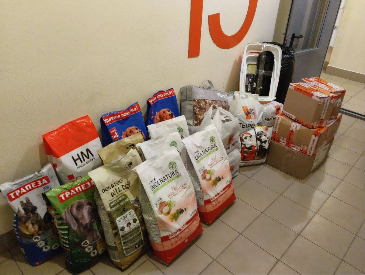 💪 Отдельное спасибо нашим "курьерам" Нюше и Владимиру, которые очень ранним воскресным утром приехали в приют и самостоятельно всё выгрузили, а потом, в несколько заходов, довезли до нашего ряда!