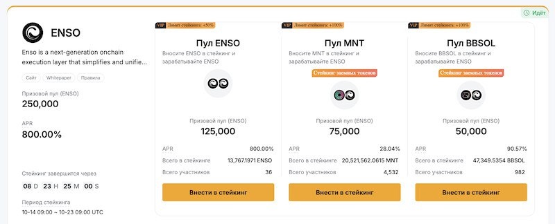 ByBit запустили новый Лаунчпул: 350 000 ENSO Биржа Bybit продолжает радовать пользователей щедрыми акциями, предлагая возможность заработать дополнительные активы без значительных вложений. На этот раз платформа объявила о новой кампании Launchpool по распределению токенов ENSO, которая может привлечь как новичков, так и действующих пользователей биржи. Общий призовой фонд 350 000 ENSO. https://cryptoage.com/ru/5201-bybit-запустили-новый-лаунчпул-350-000-enso.html