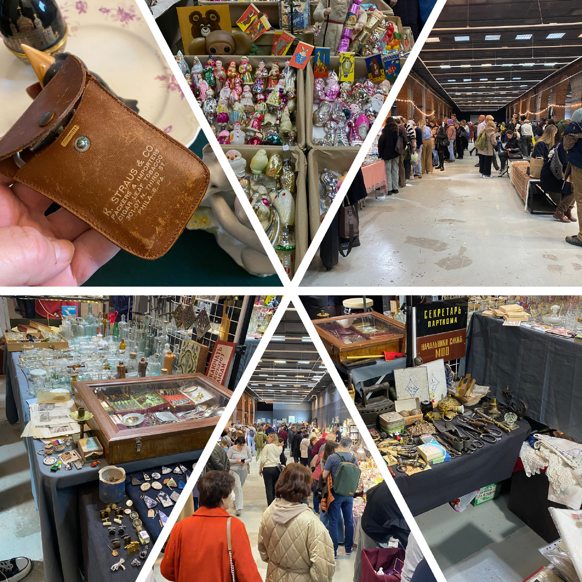 Особо не буду показывать фотографии прилавков, они совершенно ожидаемые, с большим количеством фарфора и стекла европейского происхождения, бижутерии, советского винтажа и небольшого количества антиквариата из дореволюционной России.