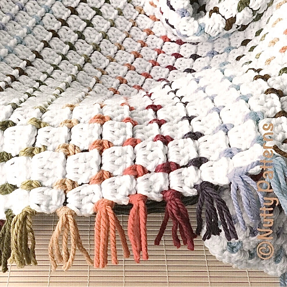 Такого варианта вязаный декор украсит любой интерьер. Крупная сетка с висюльками, так мило!