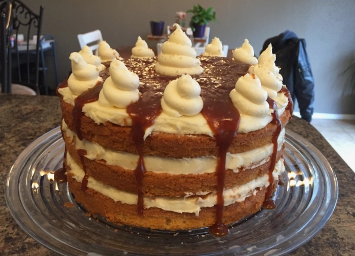 - С помощью кондитерского мешка выложите крем на половину смеси.