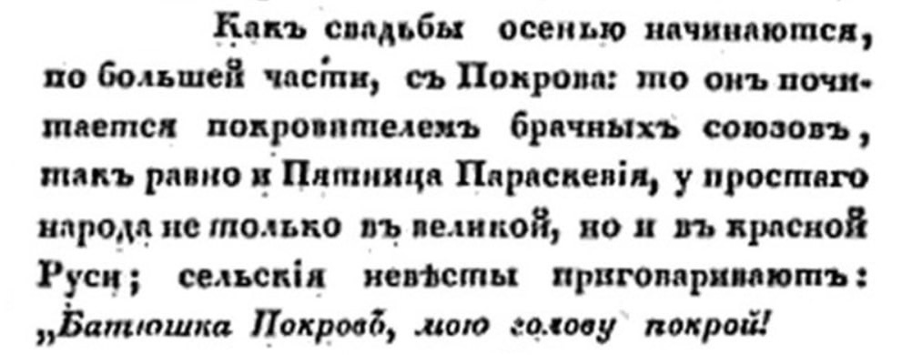 МАГИЯ ПОКРОВА. С Покрова в деревнях начинали топить печь, отмечали начало зимних посиделок, завершали выгон скота, а так же полевые и огородные работы. Накануне Покрова молодые деревенские женщины сжигали свои старые соломенные постели. Этим охраняются молодухи от «призора недоброго глаза». На Покров можно выбросить что-то из постельного, подушку или одеяло, и заменить на новое. 👟Старухи сжигали в это же самое время изношенные за лето лапти, думая исполнением этого «прибавить себе ходу на зиму». Опять же, можно расстаться со старой обувью, что износили за лето. 💦Ребятишек обливали перед Покровом водою сквозь решето на пороге хаты. Это делалось в предохранение от зимней простуды На Покров незамужние обращались к Параскеве Пятнице поскорее покрыть голову замужним платком. Незамужним рекомендуется в этот день надеть платок. Тогда мечта о замужестве быстрее сбудется! 🥞Всем женщинам рекомендуется в это день с самого утра напечь блинов, чтобы зимой в доме было тепло! Матерям или