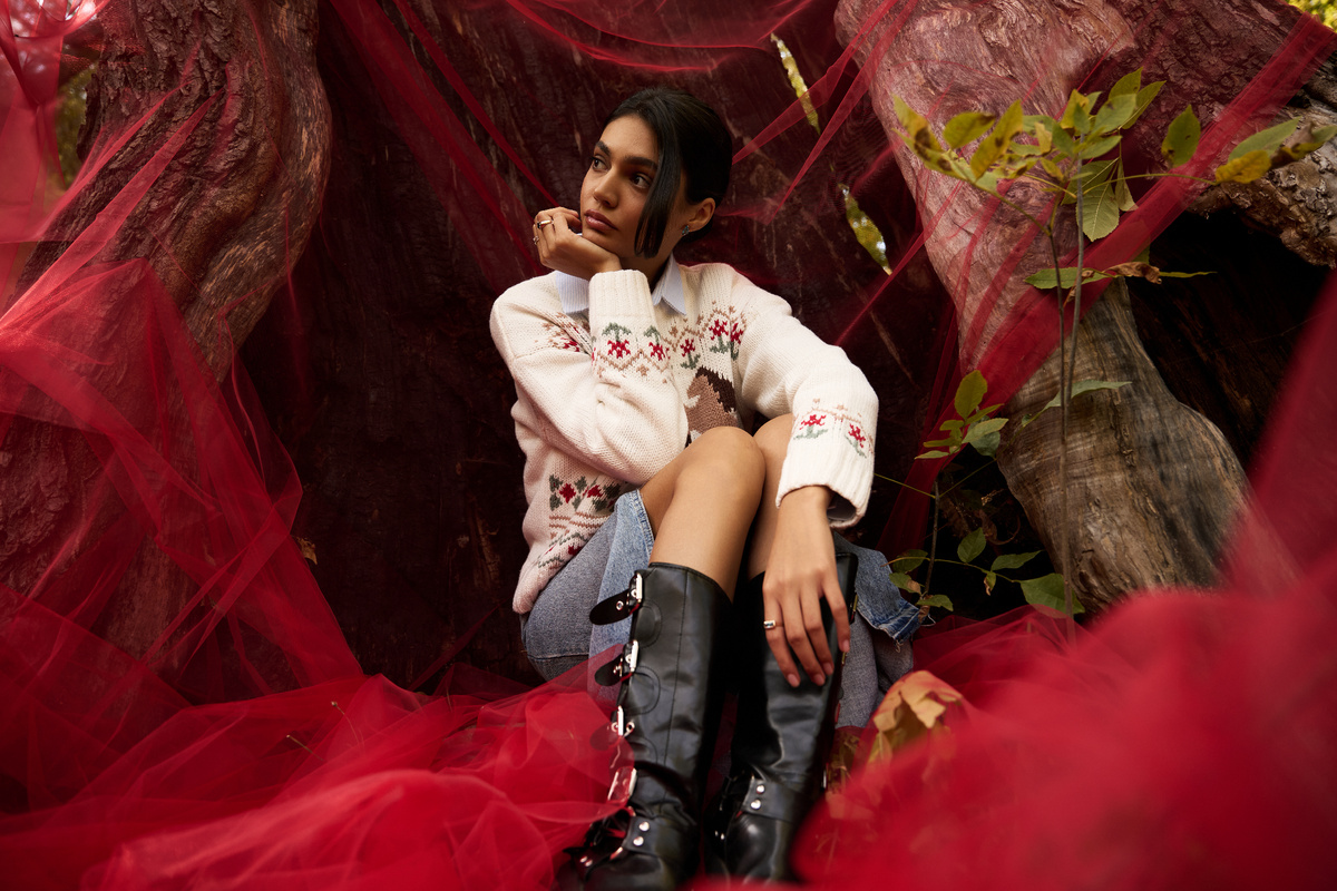 В жизни играем на контрастах. Шифоновая блуза под твидовый жакет, тюль поверх джинсов или плотных леггинсов, кружевное платье или блуза под трикотаж. Воздушное соседство делает осенний образ живым и неожиданным.