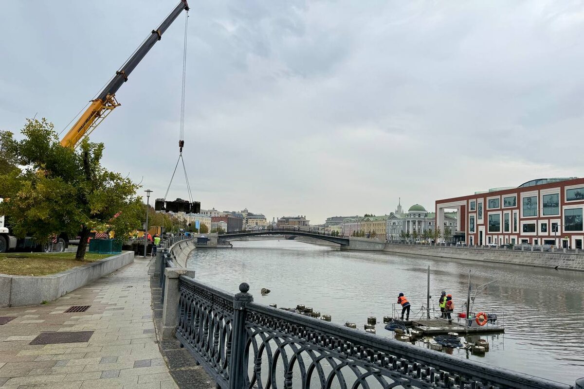 ⛲️ Фонтаны на Водоотводном канале отправились в «зимнюю спячку» В Москве продолжается подготовка городского хозяйства к зимнему сезону. Специалисты «Гормоста» демонтировали 17 плавающих фонтанов на Водоотводном канале. Работы проводились с использованием спецтехники: самоходного понтона и двух кранов-манипуляторов. Каждый модуль весом около 300 кг аккуратно подняли из воды и отправили на склад для планового технического обслуживания. 📍 Фонтаны установлены по обе стороны от пешеходного Третьяковского моста, между Кадашевской и Болотной набережными. ‼️ Комплекс фонтанов открыли в 2005 году. В 2023-м прошел его капитальный ремонт: заменили все 17 модулей, насосное и световое оборудование. Благодаря этому водные композиции стали разнообразнее, а подсветка охватила весь цветовой спектр. Ждем возвращения фонтанов следующей весной! ⭐️ ДЖКХ Москвы — подпишись!
