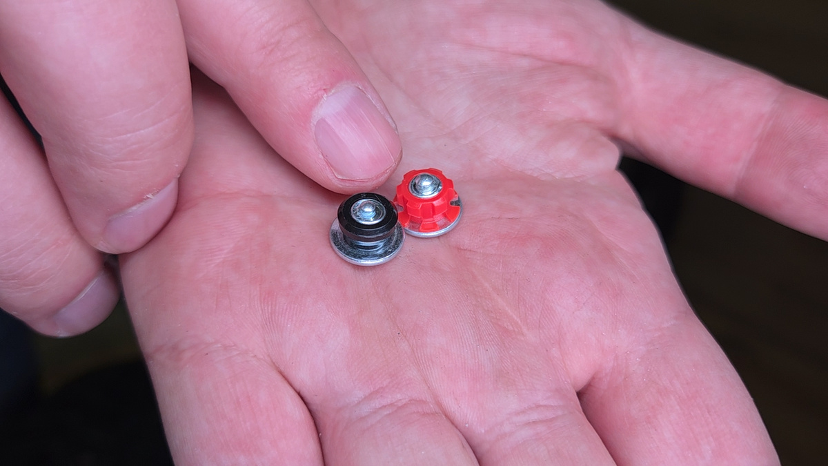 Также у них, появились ремонтные шипы с пластиковым корпусом в виде своеобразной звездочки (с ребрами по бокам). Такие шипы сидят намного прочнее в резине, чем обычные круглые. У них больше соприкосновения пластика с резиной, но самое главное - сердечник больше. Так они еще и красного цвета, «оригинальненько»