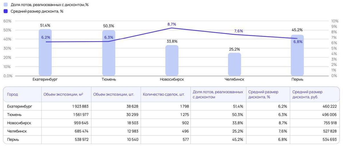 Согласно исследованиям аналитиков Объектив.РФ, более 41% сделок по ДДУ в городах-миллионниках РФ совершаются с дисконтом к изначальной цене предложения. Девелоперы продолжают активно предлагать скидки и специальные условия для покупателей, чтобы поддержать продажи на уровне. Средний размер дисконта в городах-миллионниках составляет 7% или 555 тыс. рублей в абсолютном выражении. Чем более конкурентным является рынок, чем больше на нем объем экспозиции – тем выше доля лотов, реализованных с дисконтом. Например два города-лидера по объему продаж со скидками – Екатеринбург и Тюмень, имеют объем экспозиции в 1,9 млн и 1,5 млн квадратных метров соответственно. Сервис цифровой аналитики Объектив.РФ: рынок недвижимости Телеграм-канал «Записки Объектолога» с оперативными сводками по состоянию рынка первичной недвижимости и регулярными аналитическими отчетами Подписывайтесь на нас, чтобы быть на шаг впереди конкурентов!