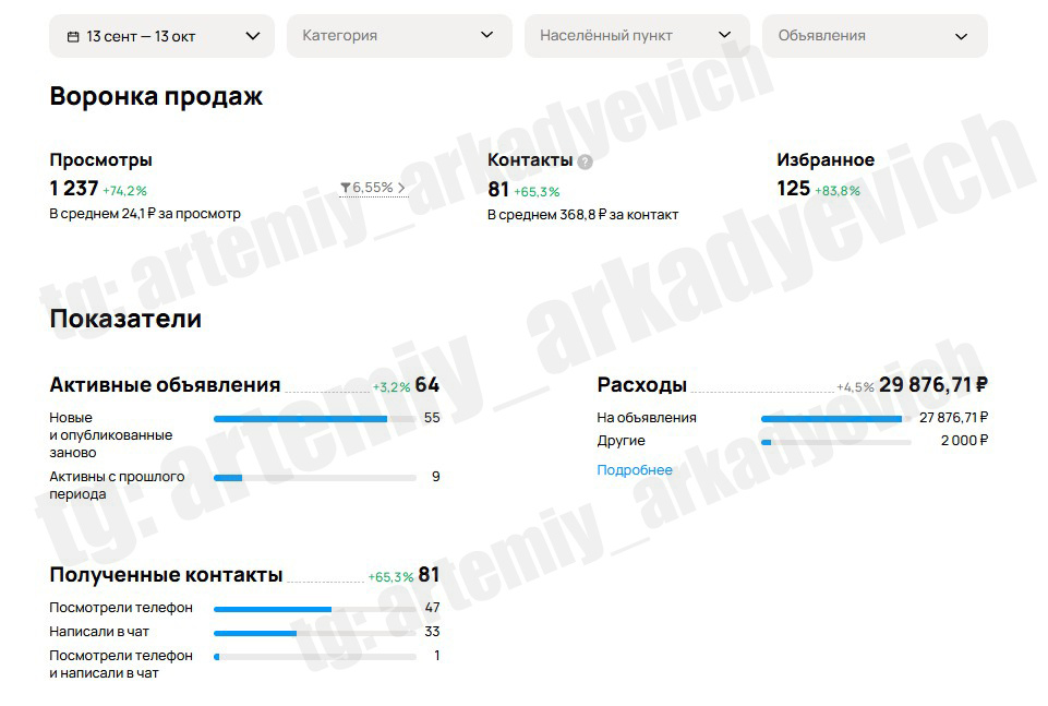 81 контактов - 28 продаж по бурению скважин на Авито (личный кейс)