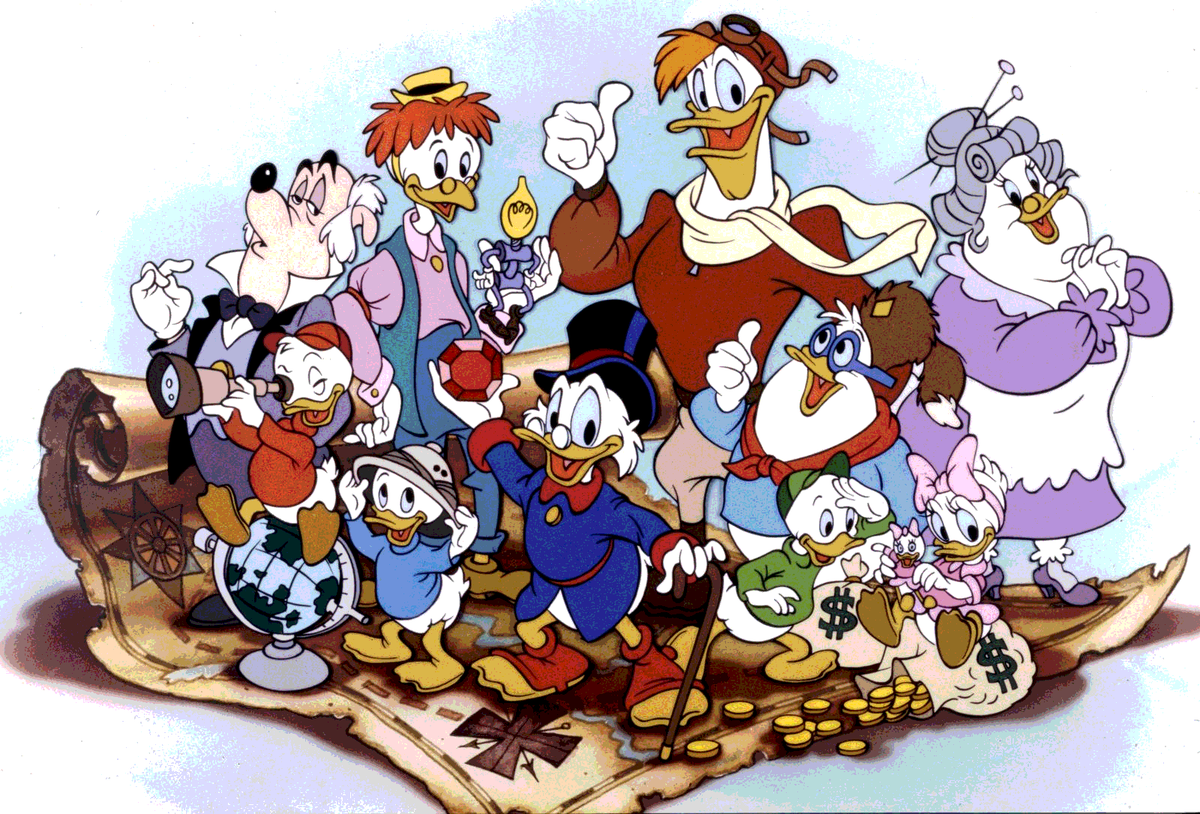 Скаредный, но не лишенный душевной теплоты Скрудж Макдак, культовый Дональд Дак (ему, правда, создатели отвели лишь малую толику экранного времени), разбитные малолетние племянники в разноцветных кеппи и футболках Вилли, Билли и Дилли (кто-нибудь знал, кто из них кто?!), добродушный селезень-катастрофа Зигзаг Маккряк, чопорный дворецкий Дакворт, интеллектуал-кулибин Винт Разболтайло, заботливая миссис Клювдия, очаровательная и находчивая Поночка и, конечно, злонамеренный и жадный Флинтхарт Гломгольд - они надолго вошли в нашу жизнь, став верными спутниками. А голоса артистов дубляжа, озвучивавших любимых героев, стали почти родными.