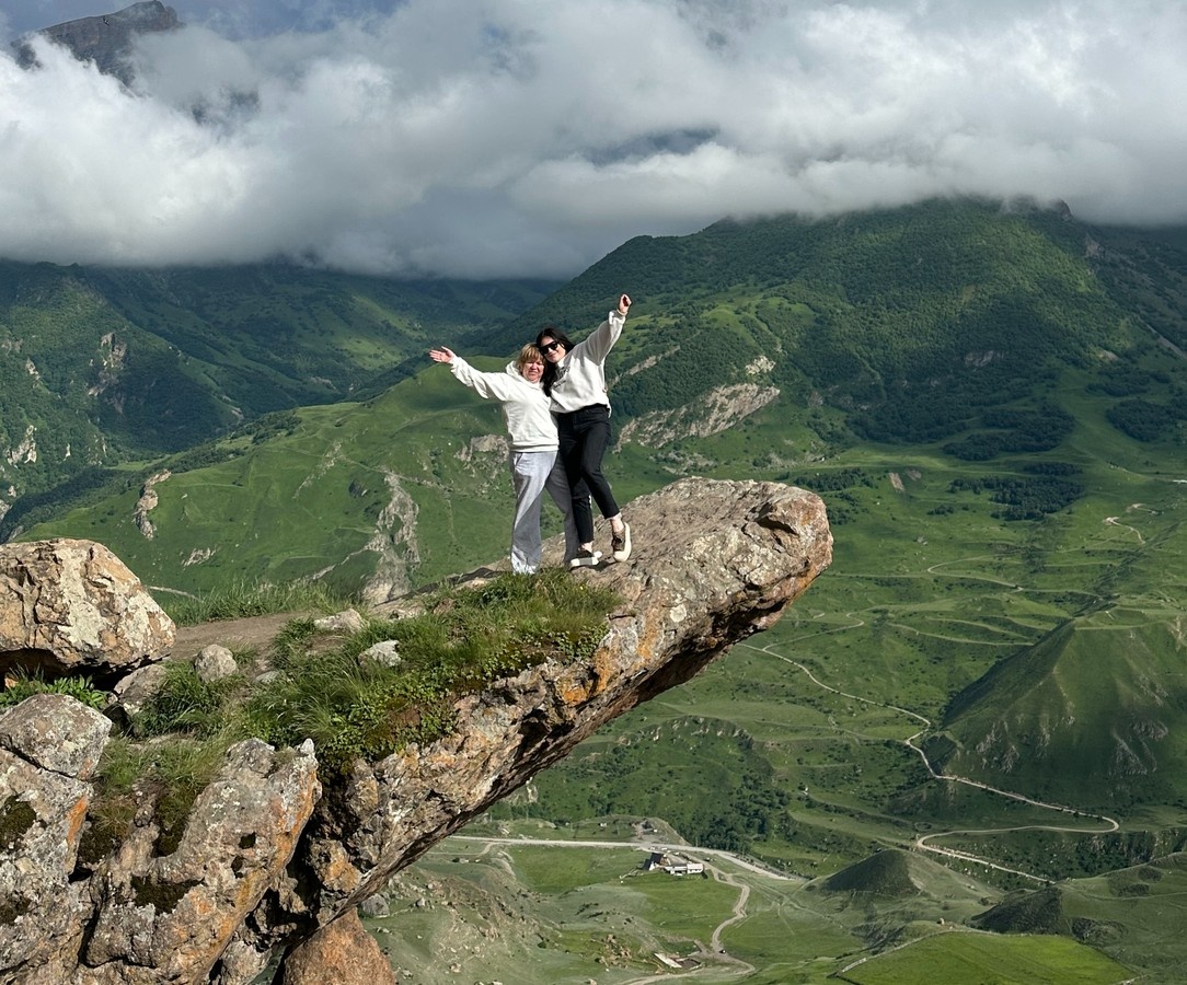 Забудьте о Норвегии! Кавказский Язык Тролля ждет вас с невероятными панорамами горных хребтов. Представьте: вы стоите на краю скалы, а перед вами расстилаются новогодние пейзажи даже летом — заснеженные вершины, изумрудные долины и чистейший воздух, наполненный ароматом горных трав.