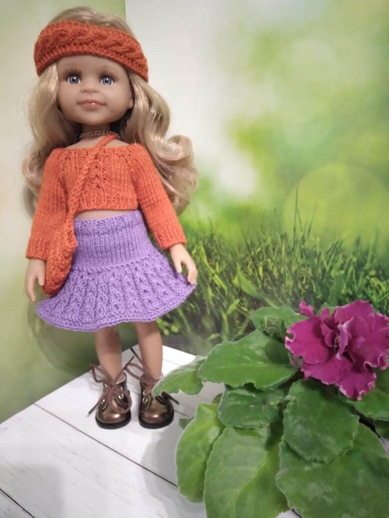 Ну вот, как и обещала, начинаю описывать комплект для Паолы (топик, юбочка, повязочка, сумочка...) В общем, что наберется, то и опишем.