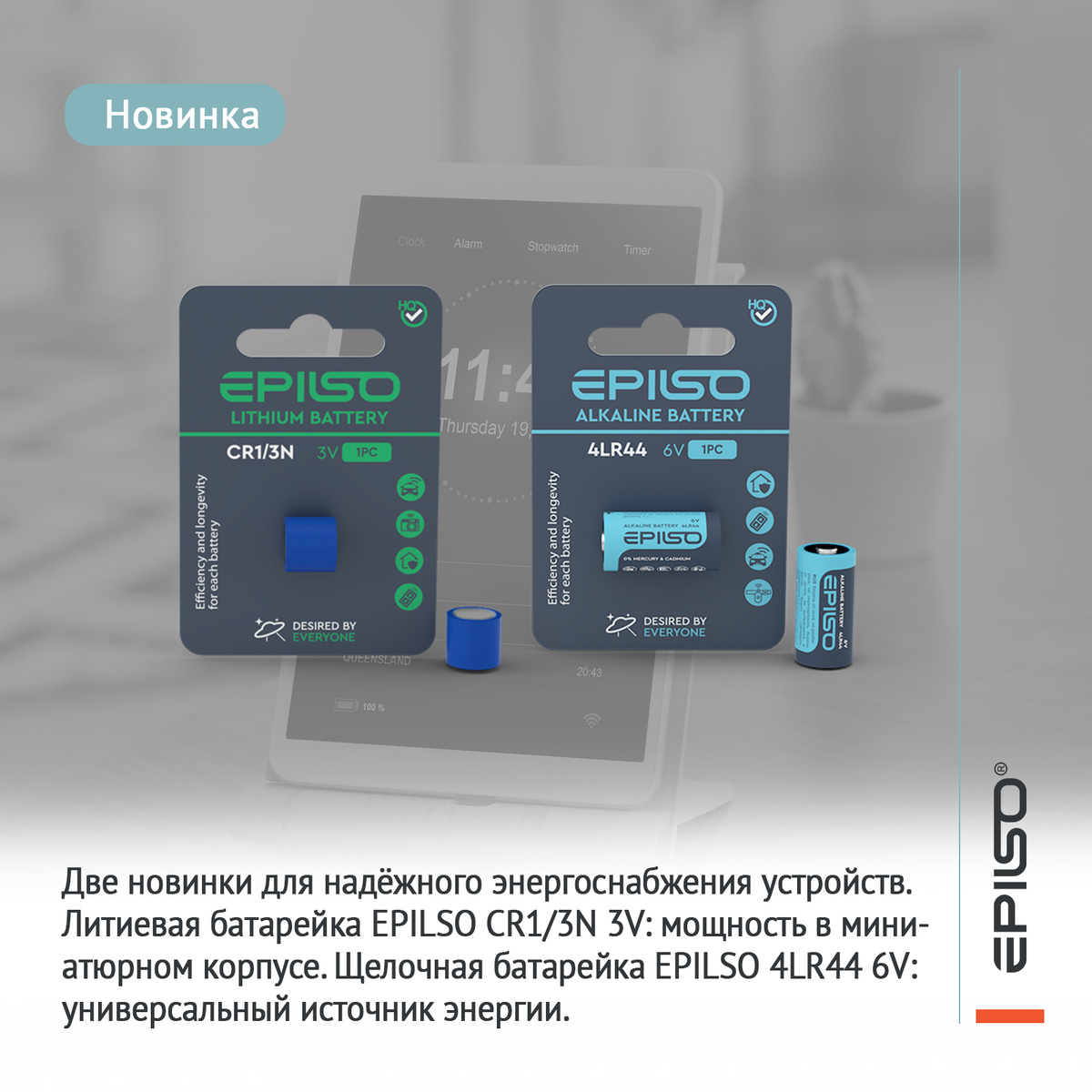 Для устройств, требующих более высокого напряжения, отлично подойдет щелочная батарейка EPILSO 4LR44. Её напряжение 6В и ёмкость 155 мАч делают её незаменимым источником э
