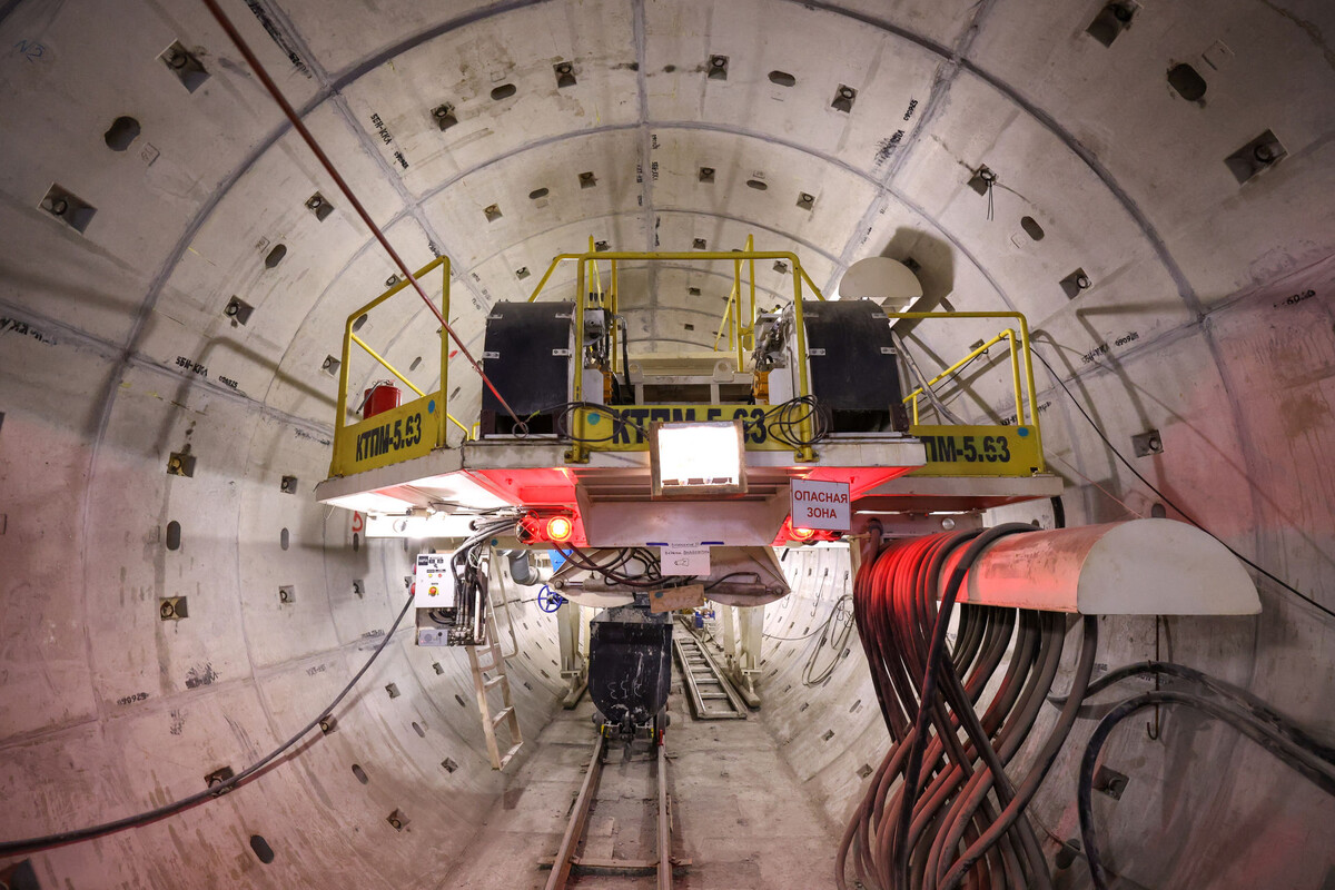 Один из щитов, названный «Вера», начал проходку в рабочем режиме. Это полностью отечественная машина с автоматической системой управления, которая пройдет около четырех километров на глубине свыше 60 метров. В общей сложности длина тоннелей между «Путиловской» и «Каретной» составляет около 7 километров.