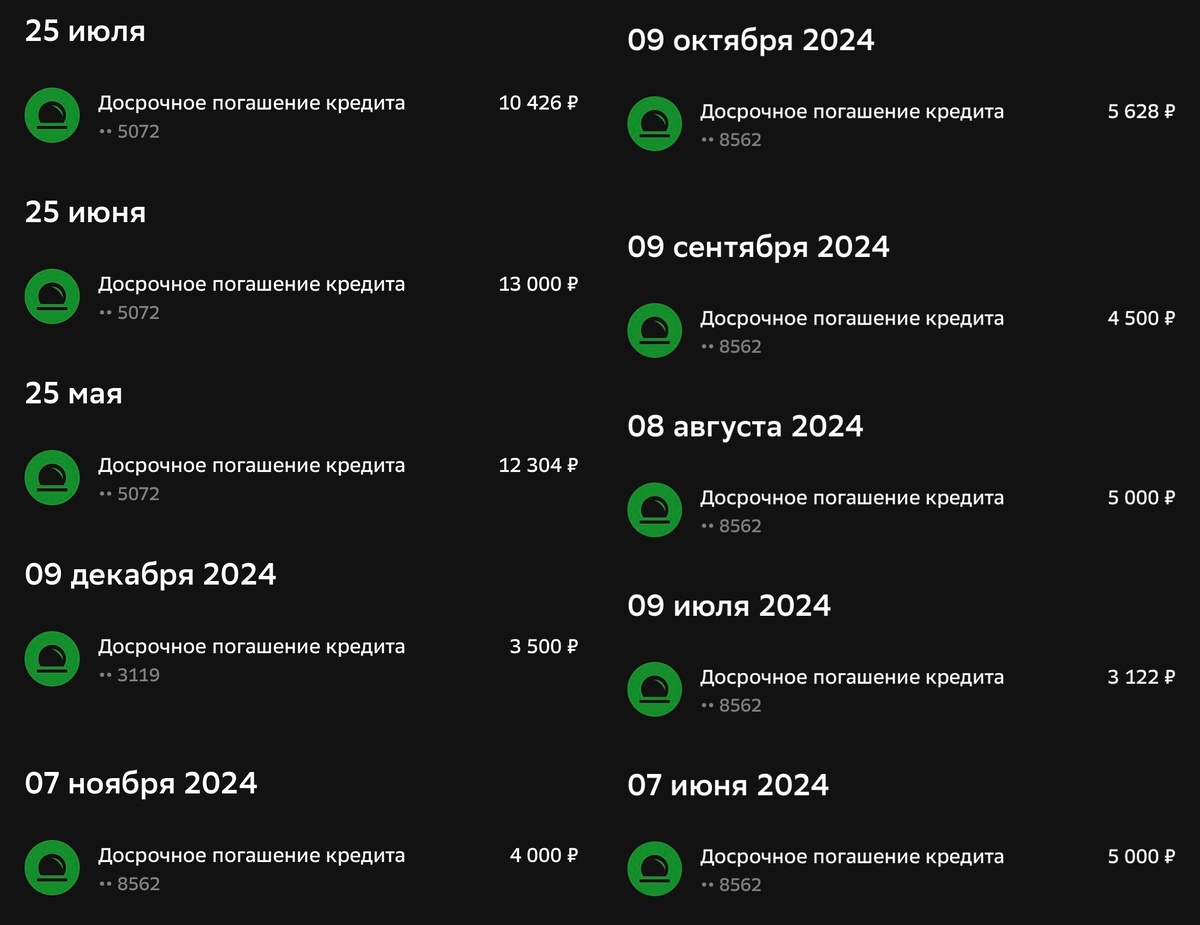 Всем привет, друзья! 👋🏼 Тем, кто пришел недавно, расскажу про свой кредит. Год назад я взял нам с женой два айфона 15 в кредит. Вышло 140 тысяч (без процентов). Как раз расплатился с предыдущими кредитами, и вроде бы появились свободные деньги (я так тогда считал). И почему-то психологически я уже настроился взять новый кредит на эту же сумму (эту болезнь нужно лечить). Присматривал, что купить, и выбор пал на телефоны. У меня никогда не было айфона, да и жену хотел порадовать на день рождения. В итоге — взял. Через месяц я оформил ипотеку, и мой свободный бюджет урезался еще сильнее. Я был к этому готов. Но потом (где-то через месяц) начал задумываться: я делаю что-то неправильно. Намеренно создал дыру в бюджете! Я даже не знал, стоит ли досрочно гасить этот кредит под 25,6%. Но уже через месяц начал понемногу вносить дополнительные суммы (по 3-5 тысяч). А когда начал инвестировать, появился новый стимул разобраться с долгами. Я обратил внимание на кредит (к тому времени выплатил у