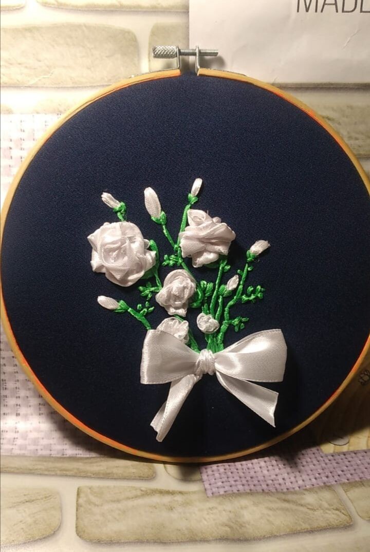 Сегодня я хочу показать вам еще одно направление, которое меня заинтересовало, вышивка лентами на пяльцах. По материалам для работы все просто. Пяльца подходящего размера, именно подходящего. На больших вышивать маленькую брошь очень не удобно. Проверено на собственном опыте. Ленты, ширина ленты зависит от того, что вы хотите сделать. Если только вышивка лентой, то берем самую тонкую, примерно пол сантиметра. Такая лента легко продевается в игольное ушко. Если это пришивные цветы из лент, как у меня бант на картине, то можно использовать ленты любой ширины. Вот на этой миниатюре я использовала только тонкие ленты и специальные иголки для вышивки лентами. Мои любимы ирисы. Очень быстрая работа, на одном дыхании, буквально на коленке за пару часов. А это моя самая любимая миниатюра, вышивка тонкими лентами по сетке. Была сделана к празднику Благовещение. Друзья мои творческие, как всегда прошу вас оценить в комментариях мою работу. Подписывайтесь и на мой творческий телеграмм канал.