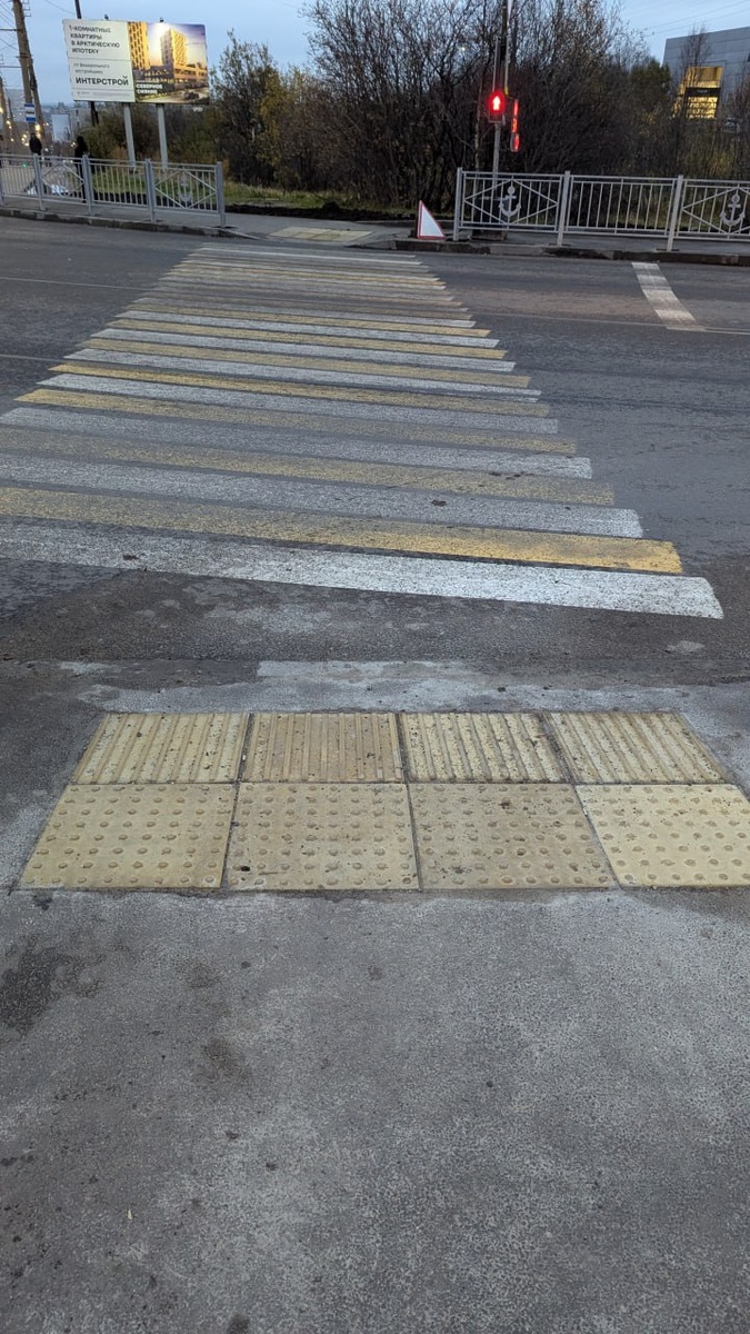 В ответ на пост #ОтЧитателей ❄ «Арктического Обозревателя»: И вновь о тактильных плитах, которые установлены, скорее всего, не по ГОСТу. На перекрёстке в районе оставки «улица Кооперативная» плиты с одной стороны лежат перпендикулярно дороге, а с другой – наискосок, тем самая создавая опасность для людей с ОВЗ. #ГородскиеВторники