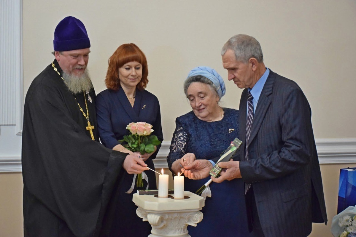В Тамбове юбилеи супружеской жизни отметили две четы Лисюниных. Федор Николаевич и Вера Ивановна идут рука об руку 50 лет, а их сын протоиерей Виктор с супругой Галиной Николаевной – 25 лет. Пары чествовали во Дворце торжеств. Федор Николаевич и Вера Ивановна поженились в 1975 году. Оба всю жизнь работали на заводе «Ретруд». Сейчас они на заслуженном отдыхе. У супругов два сына. Вместе с родителями принимал поздравления с серебряной свадьбой отец Виктор. Он и его вторая половинка Галина Николаевна обменялись кольцами в 2000 году. Протоиерей Виктор Лисюнин – известный ученый, краевед, кандидат богословия, заведующий Отделом по культуре и пресс-секретарь Тамбовской епархии. Галина Николаевна стала его опорой в семейной жизни и настоящей хранительницей домашнего очага. В их браке родилась дочь. От лица главы администрации Тамбова Максима Косенкова юбиляров поздравила его заместитель Антонина Колодина. Фото администрации города Тамбова