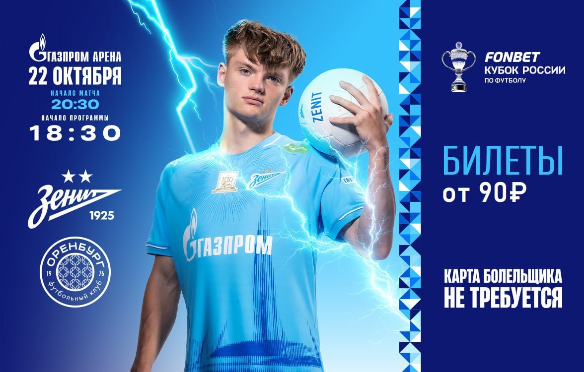 ⚡ Футбольный клуб «Зенит» приглашает на матч Кубка России с «Оренбургом» и дарит скидку 70