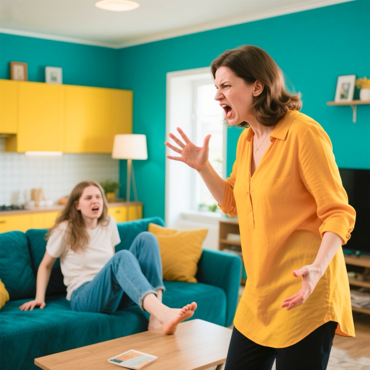 Она прошла по коридору, толкнула дверь в гостиную и замерла на пороге. На её любимом диване, развалившись и закинув ногу на ногу, сидела Лена — сестра Димы. Рядом валялась огромная спортивная сумка, из которой вываливались вещи. На журнальном столике стояли две чашки с недопитым чаем, и всё это выглядело так, будто Лена обосновалась здесь надолго.